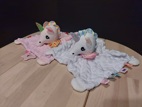 | Toutou Doudou | Licorne rose, Licorne blanc, Lapin Blanc, Lapin Bleu, Éléphant, Lapîn pêche, Ourson |
